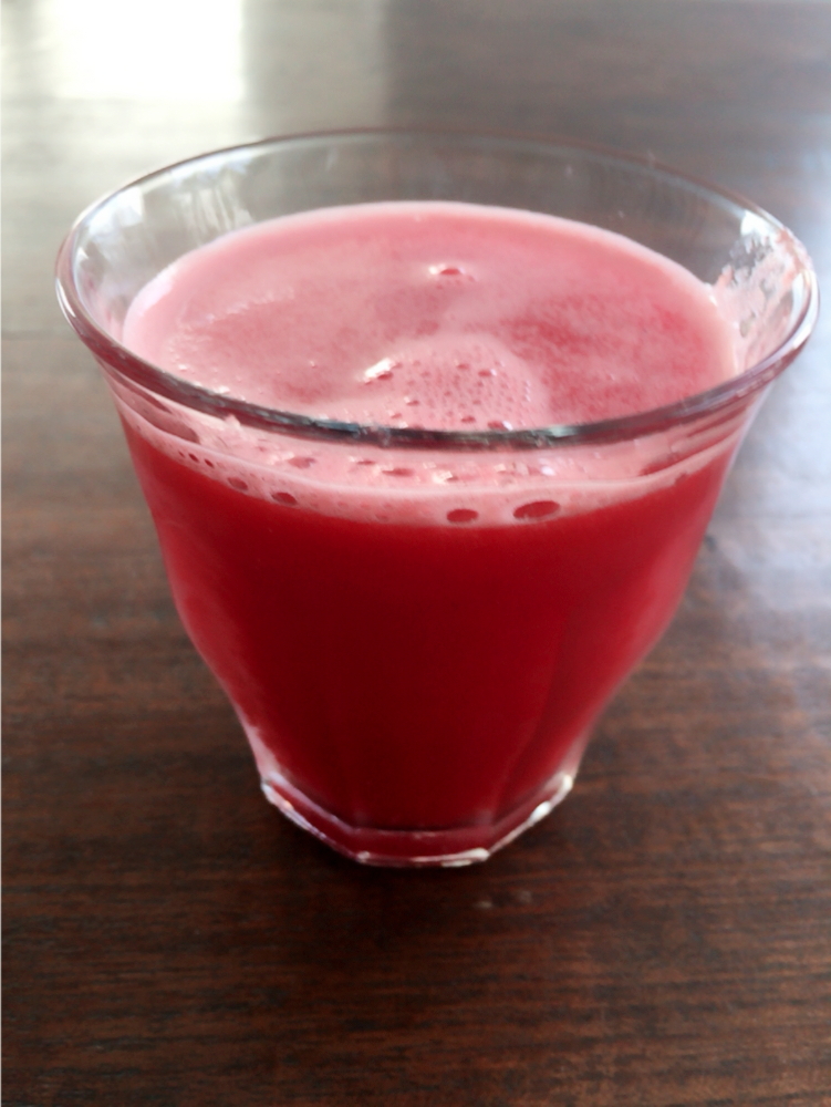 お水など一切入れないのでスイカの味が濃くとっても美味しいスイカジュースの出来上がりです。
